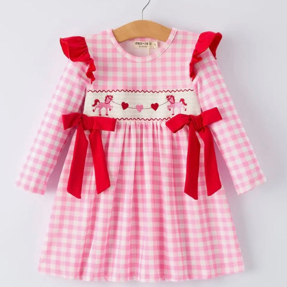 Twirl your way into a world of whimsy with the Horses and Hearts Smocked Dress! This charming frock, featuring a playful smocked design, is perfect for little ones ready to gallop through adventures (or just to the playground). It’s comfy enough for all-day fun, with a sprinkle of heart and hooves magic!